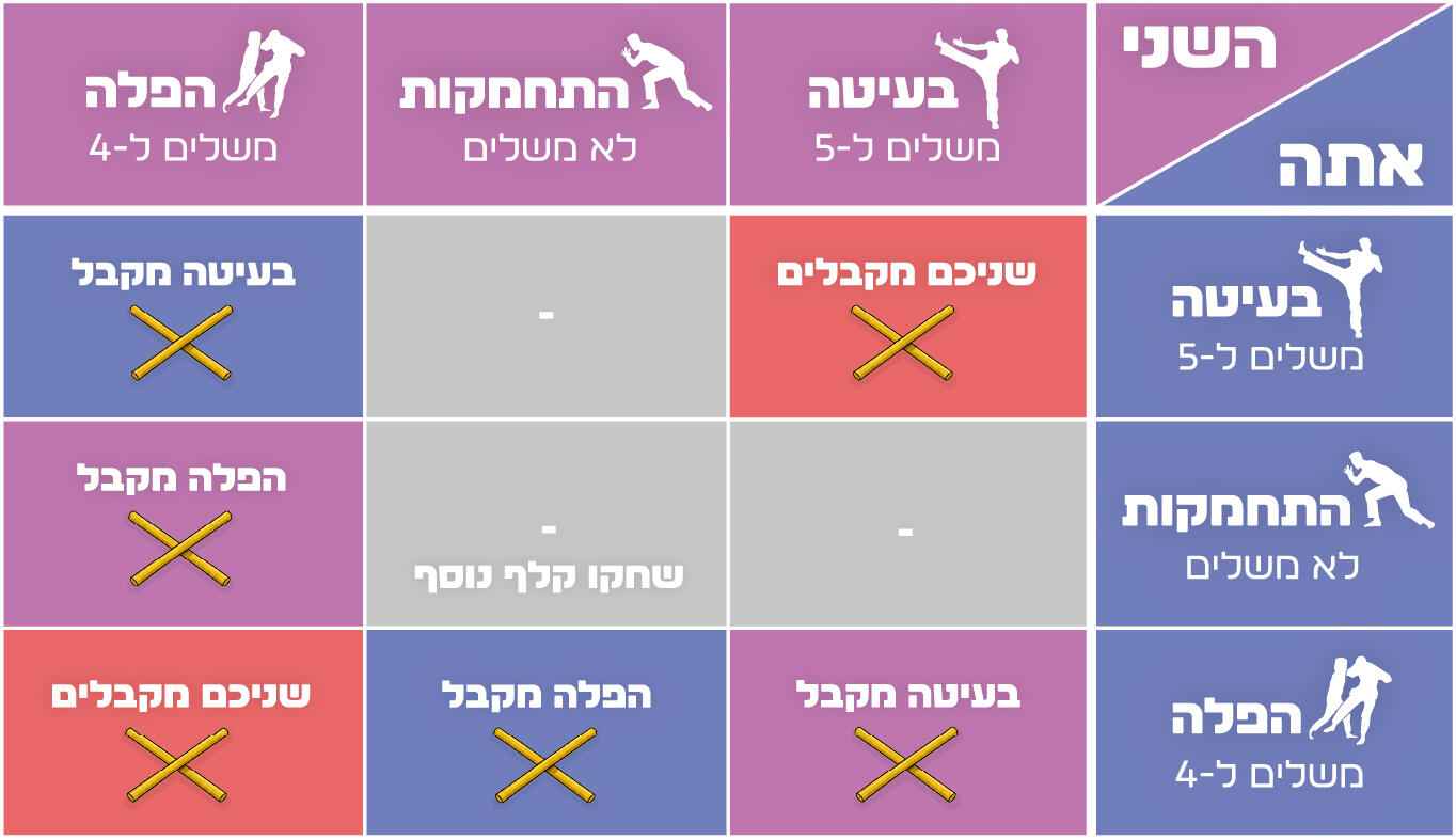 לכל סיטואציה יש תוצאה. שניכם בעטתם באותו זמן? התנגשתם! קבלו קלף מקוללה.
